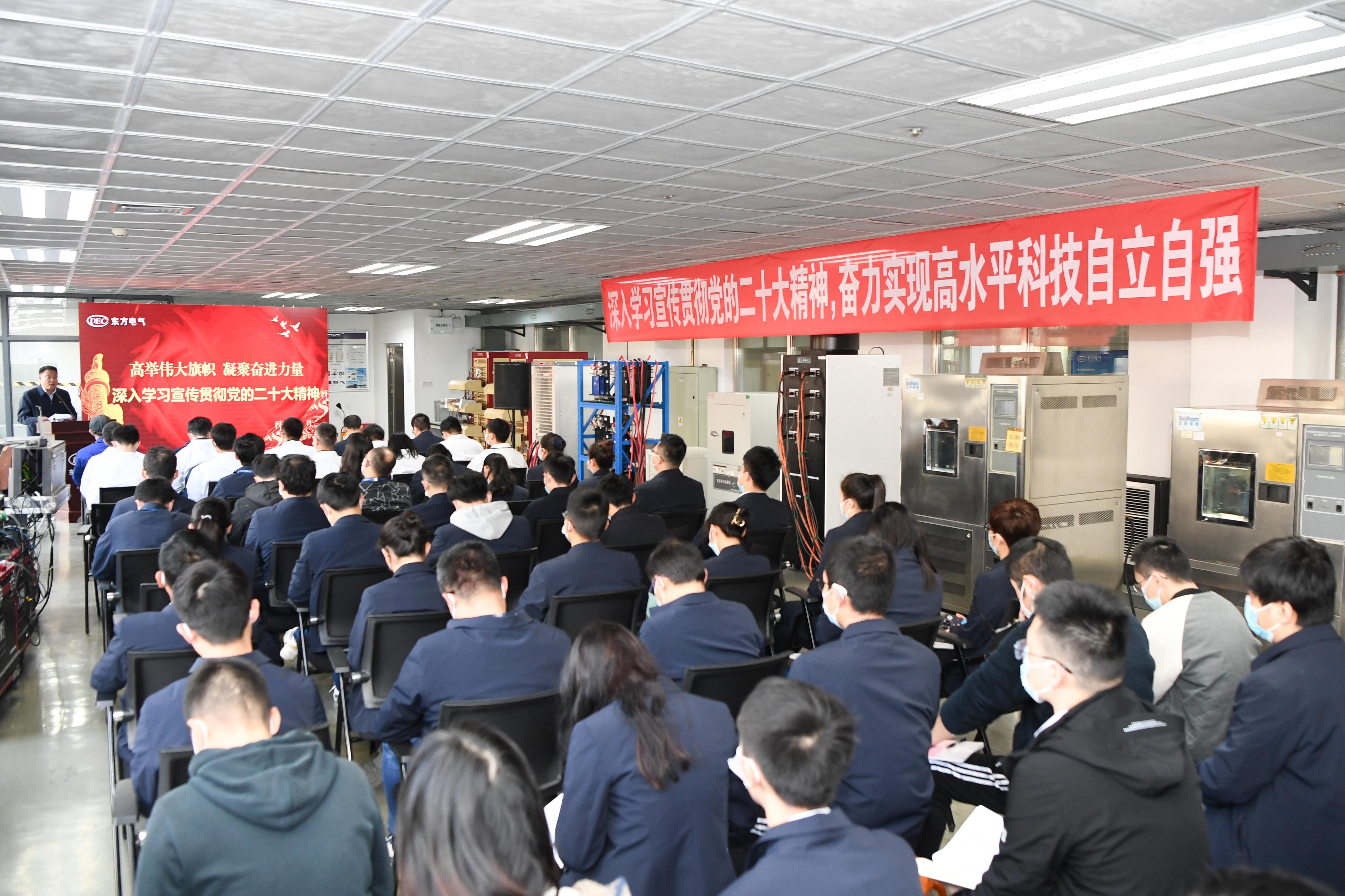 为引导全集团广大干部职工切实把思想和行动统一到党的二十大精神上来,11月22日,东方电气集团“高举伟大旗帜 凝聚奋进力量”党的二十大精神宣讲队首场宣讲报告会在新能源电池测试实验室举行,用“行走的课堂”讲述“我们身边”拼搏奋进争先的鲜活故事,激励科研工作者以实干抢抓创新先机,为加快实现高水平科技自立自强贡献“东方”力量。