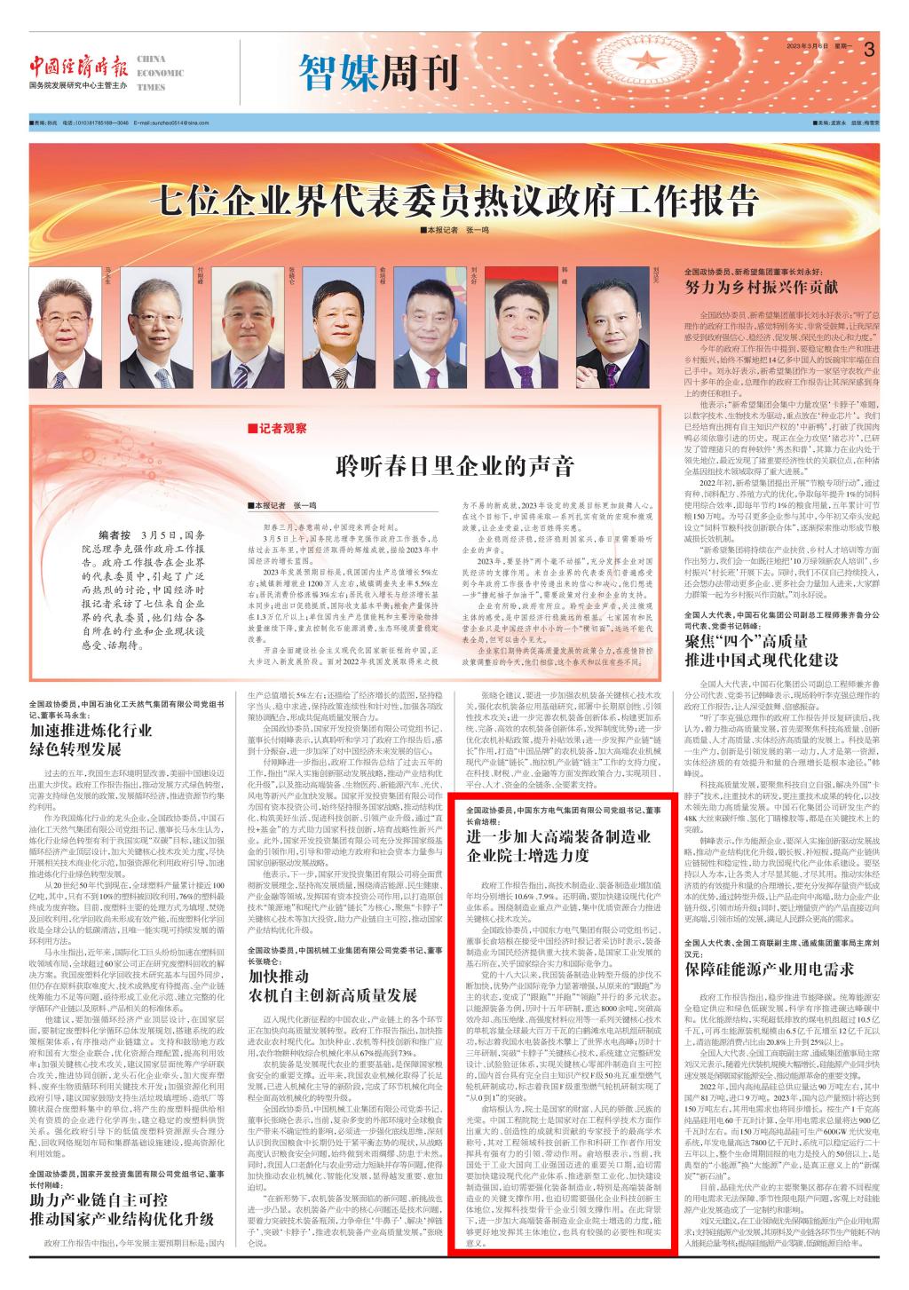 [中国经济时报]七位企业界代表委员热议政府工作报告