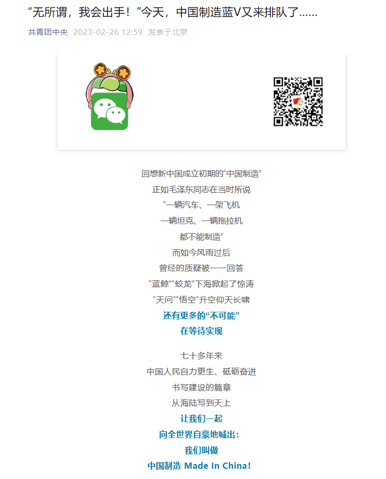 [共青团中央]“无所谓,我会出手!”今天,中国制造蓝V又来排队了……