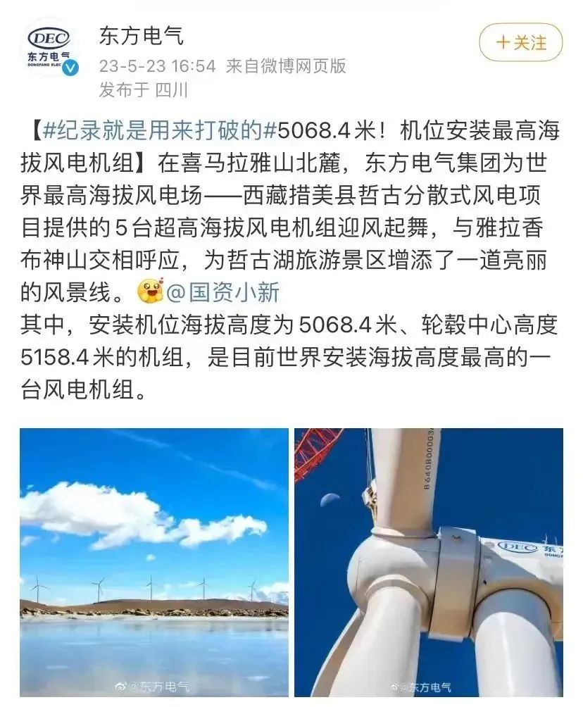 机位安装最高海拔风电机组