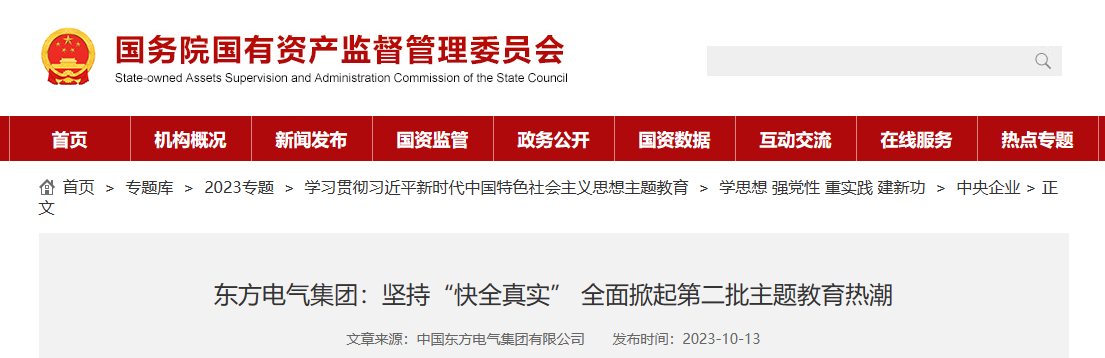 [国资委网站]东方电气集团:坚持“快全真实” 全面掀起第二批主题教育热潮