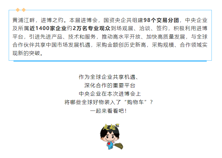 东方电气集团与6家企业在能源装备领域和高端石化装备领域达成合作;中国建筑围绕电气智能、电梯、楼宇自控、空调机组、水泵、压缩机等大型系统和设备,共签订60份战略框架协议;中国煤炭科工签约内容既有机械设备、元器件等高端产品,又有技术服务及矿用装备进出口认证服务;中国机械总院与西门子(中国)有限公司在装备制造、物流、冶金、环保、汽车、科研等领域将开展深度合作;矿冶集团通过采购设备推动装备升级改造、智能开采发展、智慧矿山建设,推进全球矿产资源开发利用向“安全、绿色、高效、智能”和可持续方向发展;中国铁建采购签约产品金额3626.09万美元,同比增加6.72%……