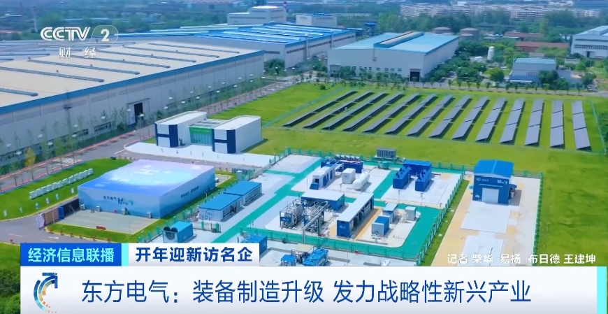 中国东方电气集团有限公司党组书记董事长俞培根:朝着数字化智能化方向走,传统能源要朝新能源新兴产业方向走,我们要朝更加高端的装备制造业发展。比如说氢能,我们要把它打造成集团公司未来发展的一个重要产业支柱。在储能方面,多种储能技术进行研发攻关。新材料方面,打造一个新材料的产业平台。2023年,东方电气战略性新兴产业营收占比超过42%。全年发电设备产出量迎来历史新高,达到4395万千瓦。