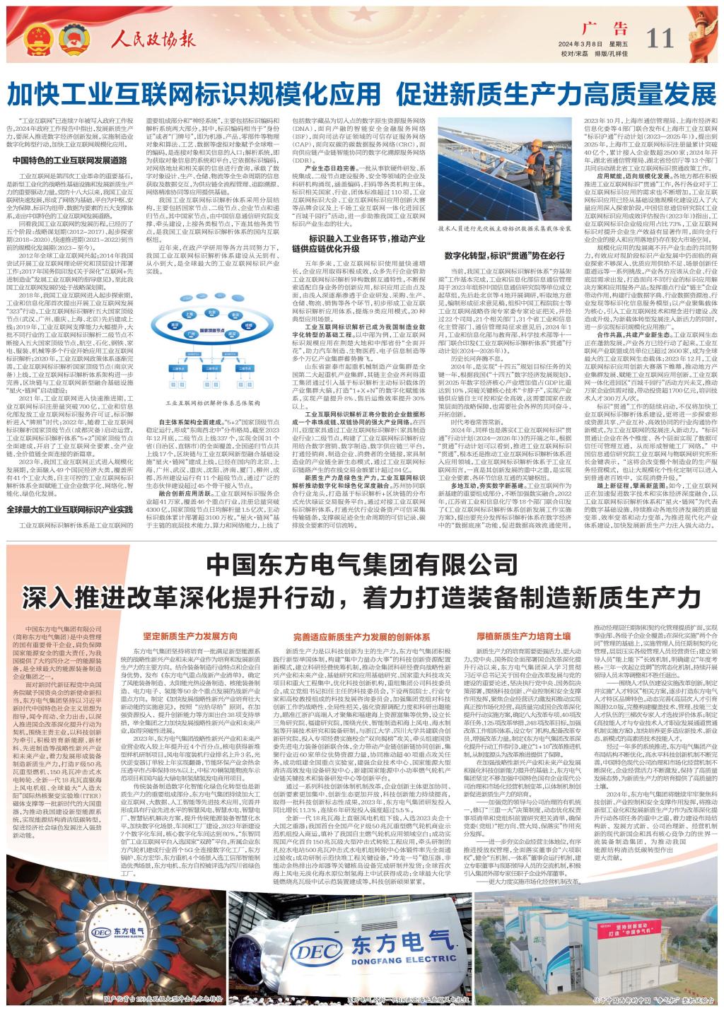 [人民政协报]中国东方电气集团有限公司:深入推进改革深化提升行动,着力打造装备制造新质生产力