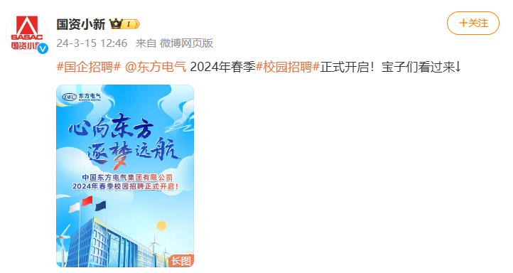 [国资小新]#国企招聘# @东方电气 2024年春季#校园招聘#正式开启!宝子们看过来↓ ​​​