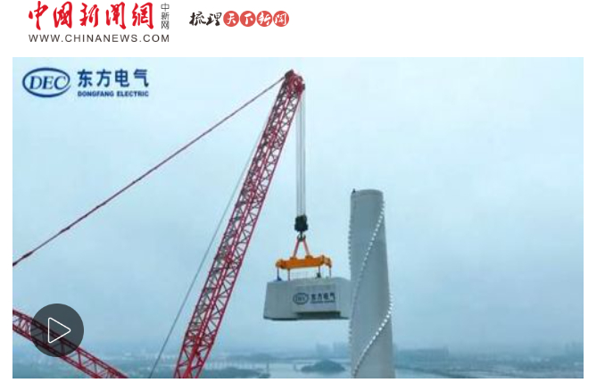 [中国新闻网]全球首台18兆瓦海上风电机组吊装成功
