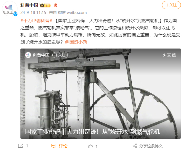 [科普中国]国家工业密码|大力出奇迹!从“烧开水”到燃气轮机