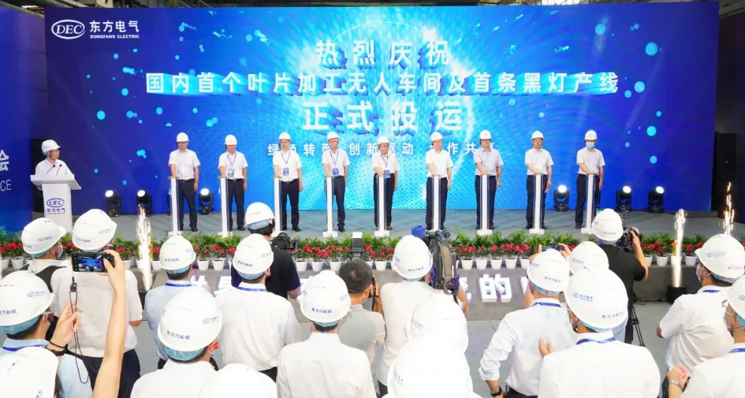 8月25日上午,国内首个叶片加工无人车间及首条黑灯产线投运仪式在东方汽轮机举行。随着一键启动,AGV小车、机器人、数控加工中心等一系列智能设备,在数据驱动下智慧运行,标志着国内首个叶片加工无人车间及首条黑灯产线正式投运,这里也是2022世界清洁能源装备大会展示的示范应用场景之一。