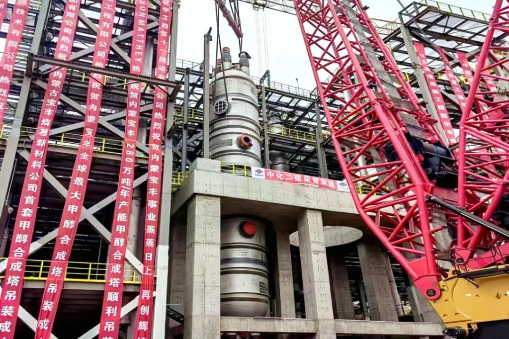 本网讯 近日,由东方电气集团所属东方锅炉承制的内蒙古宝丰280万吨甲醇项目4台戴维甲醇合成塔已全部完成交付,其中有2台设备顺利安装就位。
