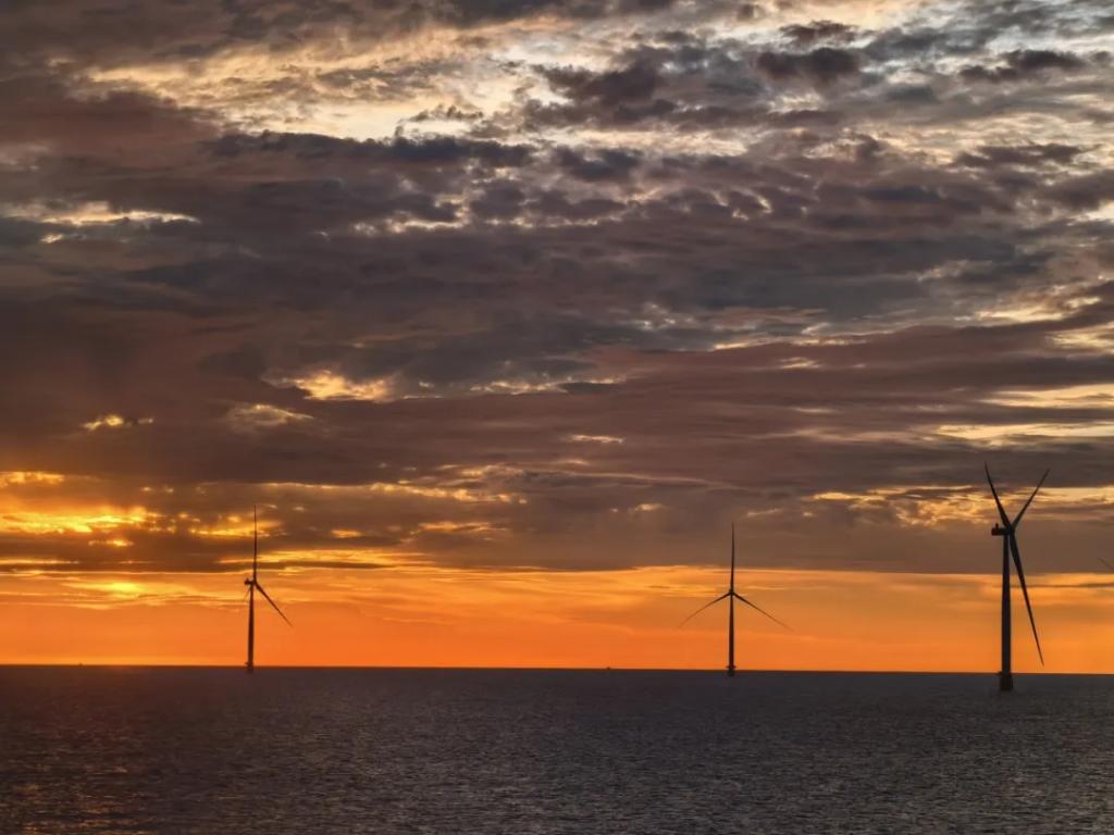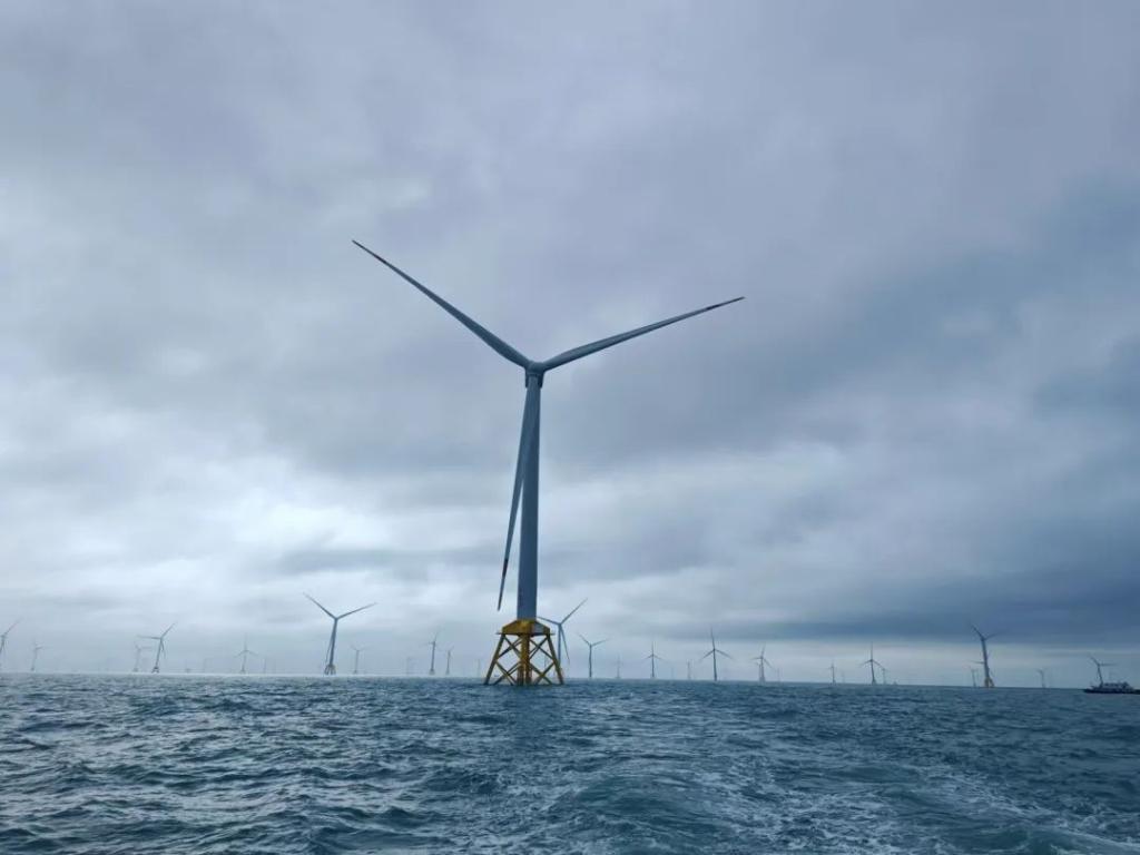 ▲9月9日,三峡新能源广东省阳江市阳西沙扒四期项目现场,东方电气研制供货的43台7兆瓦海上风机正常运转。