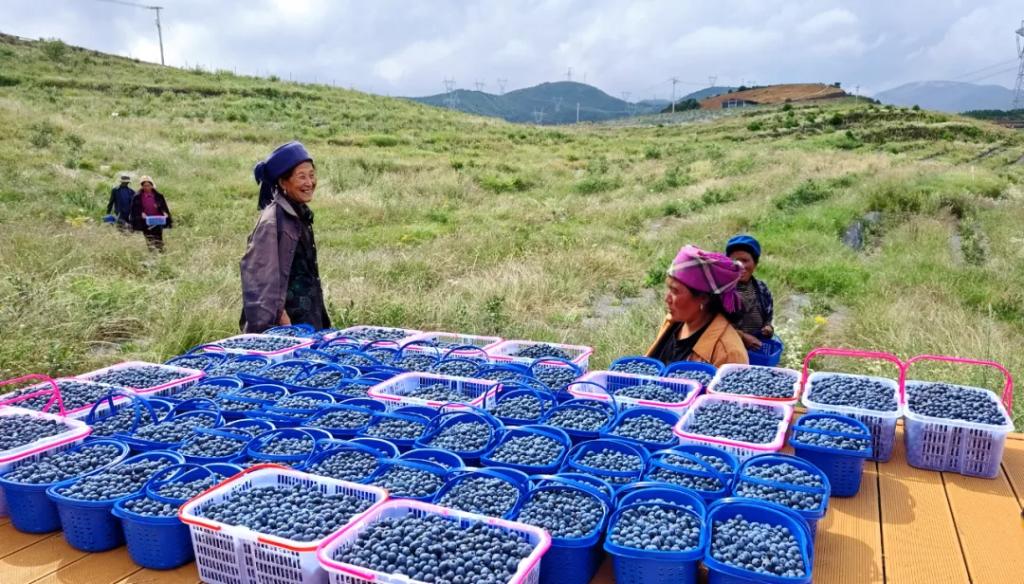 2023年,火普村的蓝莓获得了丰收。为了激发当地脱贫地区和脱贫群众内生发展动力,东方电气集团还用“以购代捐”和职工参与认购的方式,在火普村采购了9000多斤蓝莓,让帮扶地区农产品变商品、收成变收入,为村民和村集体带来一笔可观的收入的同时,也解决了一批村民的就业问题。