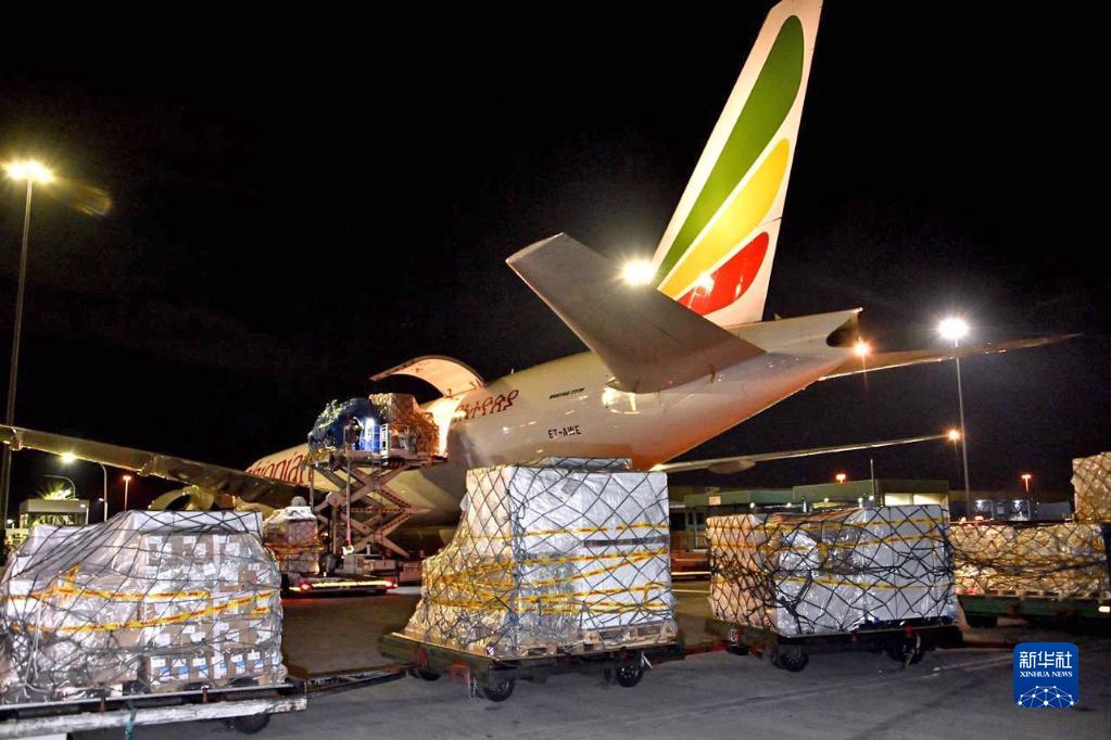 2020年4月14日,中国援助的抗疫物资抵达南非约翰内斯堡奥坦博国际机场。新华社发(中国驻南非大使馆供图)