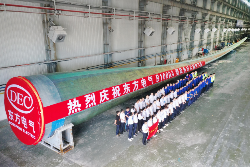 ❖近日,东方风电自主研制、拥有完全自主知识产权的B1000A型海上风电叶片在山东叶片制造基地顺利下线,该叶片主要配套东方风电7-8兆瓦等级海上风电机组,具有风能捕获能力优、发电量和安全可靠性高、雷击防护能力强和度电成本低等特点,单支叶片长度为100米,是继B1030A、B1085A型叶片后,东方风电下线的又一款百米级风电叶片。