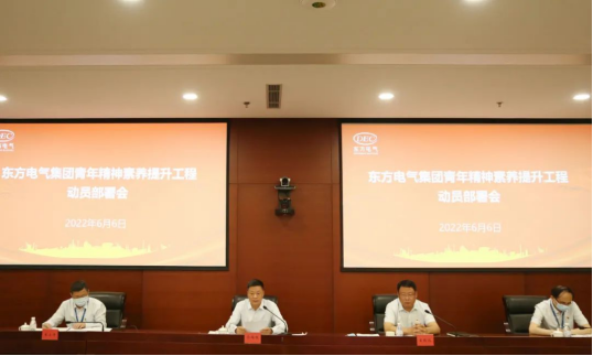6月6日,东方电气集团召开青年精神素养提升工程动员部署会,深入学习贯彻习近平总书记在庆祝中国共产主义青年团成立100周年大会上的重要讲话精神,贯彻落实国资委党委《关于开展中央企业青年精神素养提升工程的通知》精神,全面部署集团公司青年精神素养提升工程,以更高站位、更高标准、更实举措全面加强集团公司共青团和青年工作,引领集团公司广大团员青年沿着习近平总书记指引的方向奋勇前进,激发广大团员青年为推动集团公司高质量发展、加快建设世界一流企业接续奋斗的精神力量。集团公司党组书记、董事长俞培根出席会议并讲话,党组副书记、董事宋致远主持会议。
