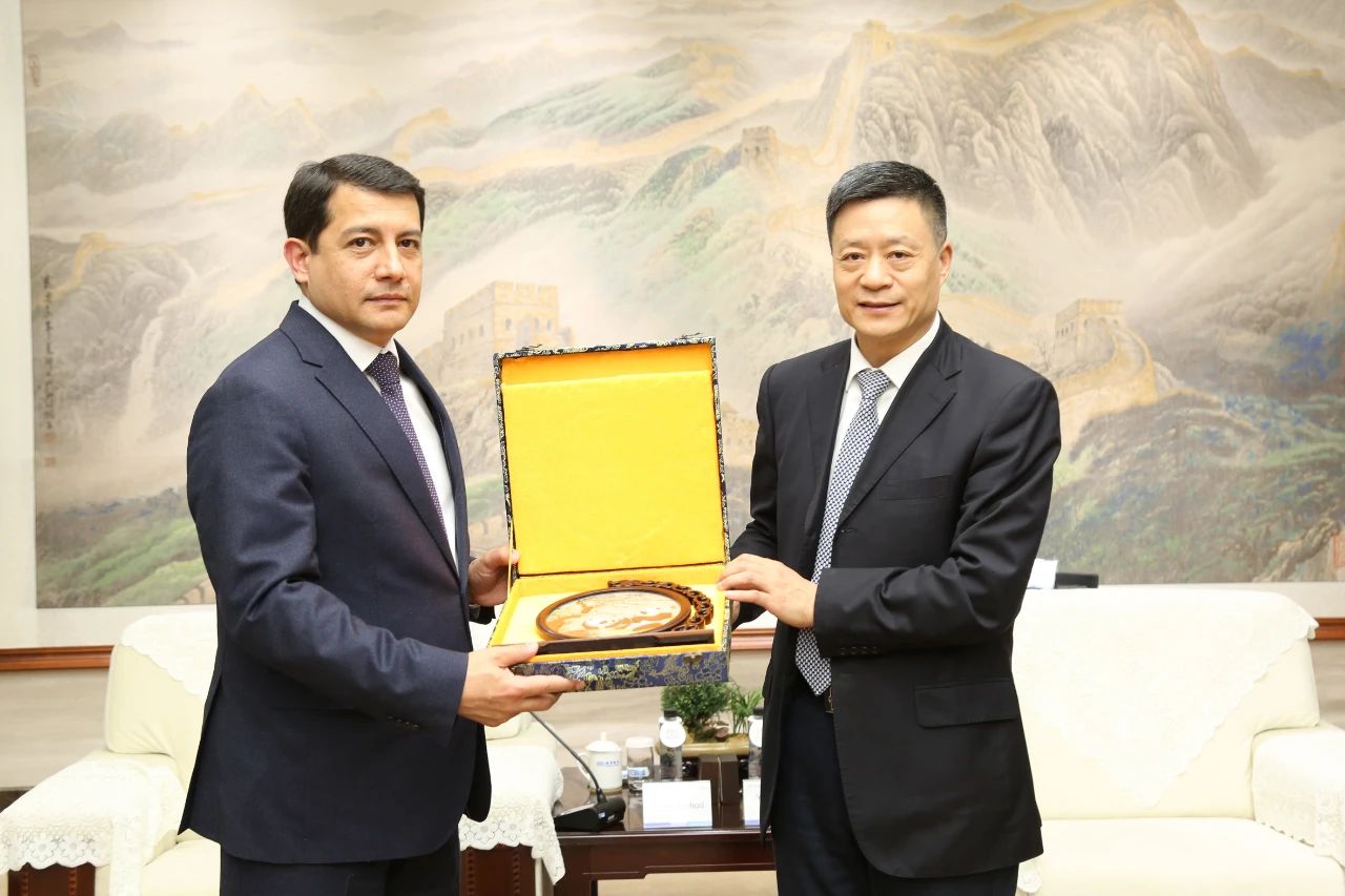 本网讯 3月17日,乌兹别克斯坦驻华大使法尔霍得·阿尔济耶夫一行访问东方电气集团,受到集团公司党组书记、董事长俞培根的热情接待。集团公司党组副书记、董事宋致远,四川省外事办公室副主任李辉陪同参加。