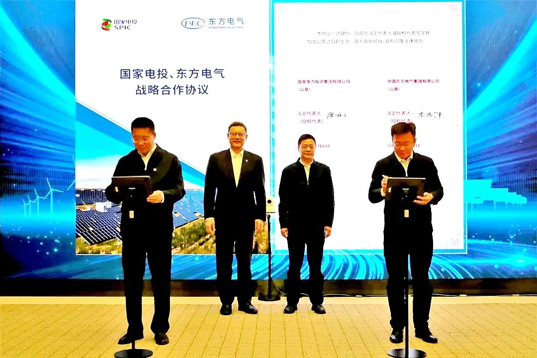 本网讯 5月6日,中国东方电气集团有限公司与国家电力投资集团有限公司在京签署战略合作协议。双方将全面贯彻落实党的二十大精神,携手落实“双碳”战略,共谋绿色、低碳、高质量发展。