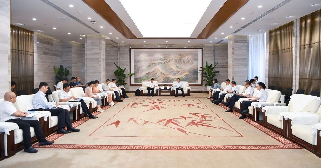 本网讯 7月16日,浙江省东阳市委书记楼琅坚访问东方电气集团,受到集团公司党组书记、董事长俞培根的热情接待,双方就进一步加强央地合作、共同推进高质量发展进行友好座谈交流。