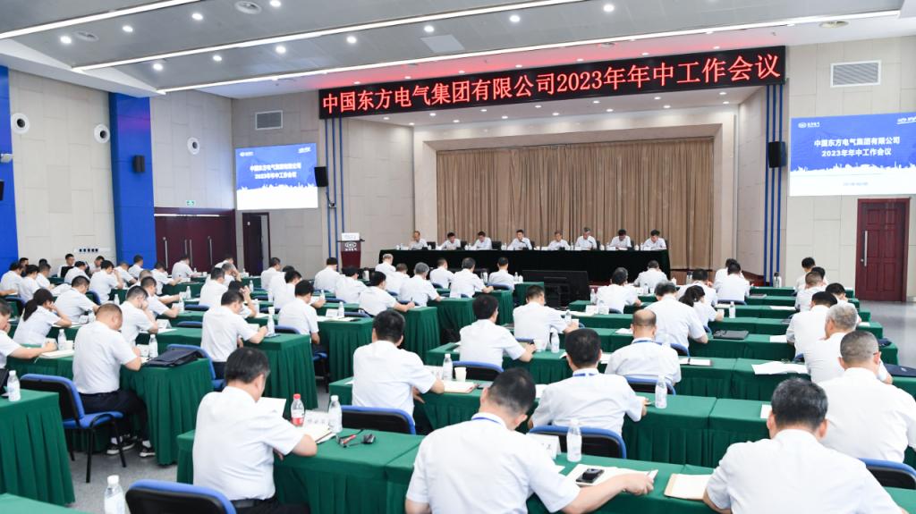 本网讯 7月26日,东方电气集团召开2023年年中工作会议,深入贯彻落实党的二十大精神,持续推动学习贯彻习近平新时代中国特色社会主义思想主题教育走深走实,认真落实全国国有企业改革深化提升行动动员部署会议和中央企业负责人研讨班会议精神,教育引导全集团干部职工深刻领悟“两个确立”的决定性意义,进一步增强“四个意识”、坚定“四个自信”、做到“两个维护”,总结分析上半年经营工作情况,安排部署下半年重点任务,咬定发展目标,凝聚全员力量,以高质量发展的新成效检验主题教育成果。