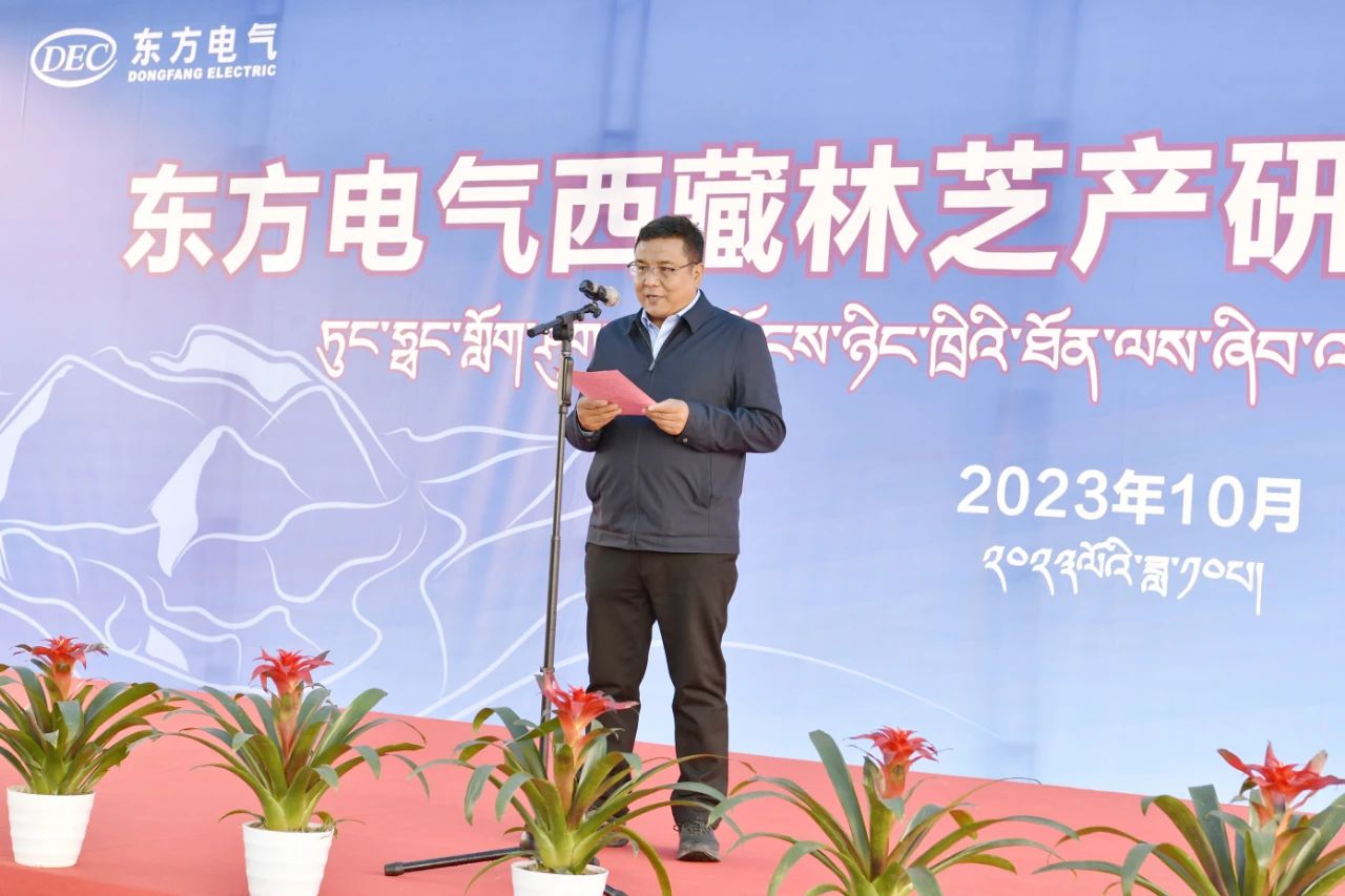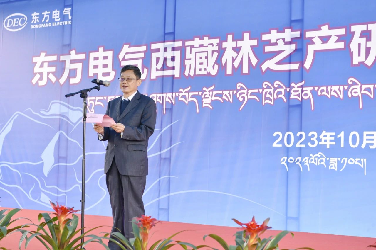 俞培根代表东方电气集团向林芝产研基地奠基开工表示热烈祝贺,向长期以来关心和支持东方电气集团发展的西藏自治区党委政府、林芝市委市政府、各合作方致以诚挚感谢。俞培根表示,东方电气集团深入贯彻落实习近平总书记关于西藏工作的重要指示批示精神,积极参与西藏地区能源电力基础设施建设,为保障西藏经济发展作出了积极贡献。此次东方电气西藏林芝产研基地建设,将着力推进产研深度融合,加快形成新质生产力,为西藏“国家清洁能源基地”建设贡献新力量,为西藏能源发展和能源科技进步增添新动能。