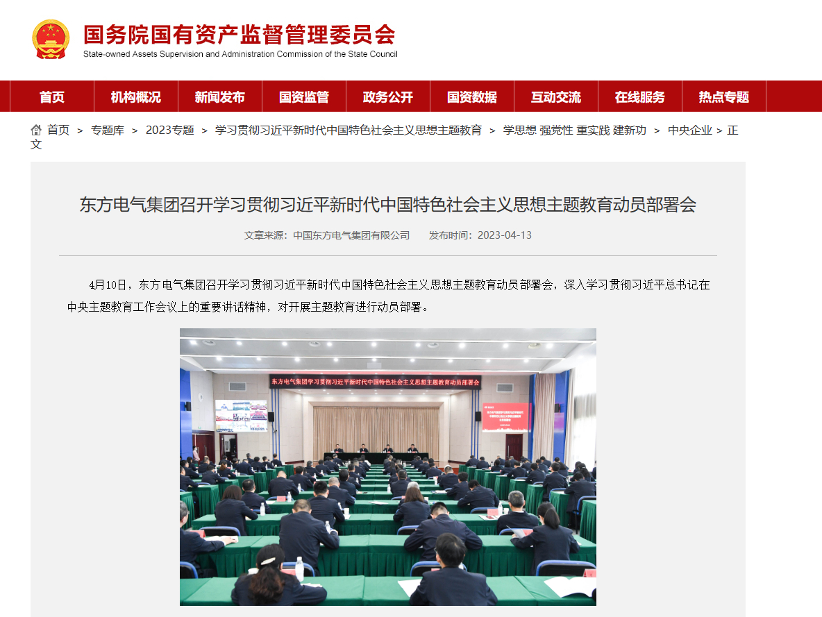 【媒体关注】国资委网站:东方电气集团召开学习贯彻习近平新时代中国特色社会主义思想主题教育动员部署会