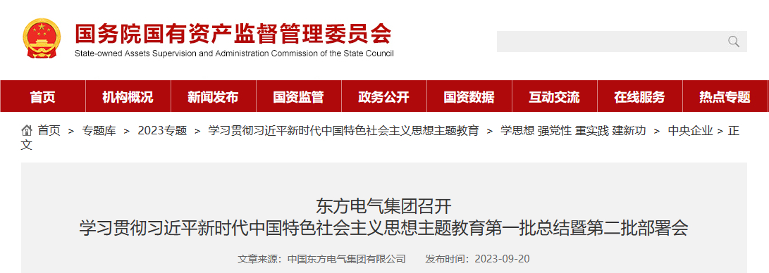 【媒体关注】国资委网站:东方电气集团召开 学习贯彻习近平新时代中国特色社会主义思想主题教育第一批总结暨第二批部署会