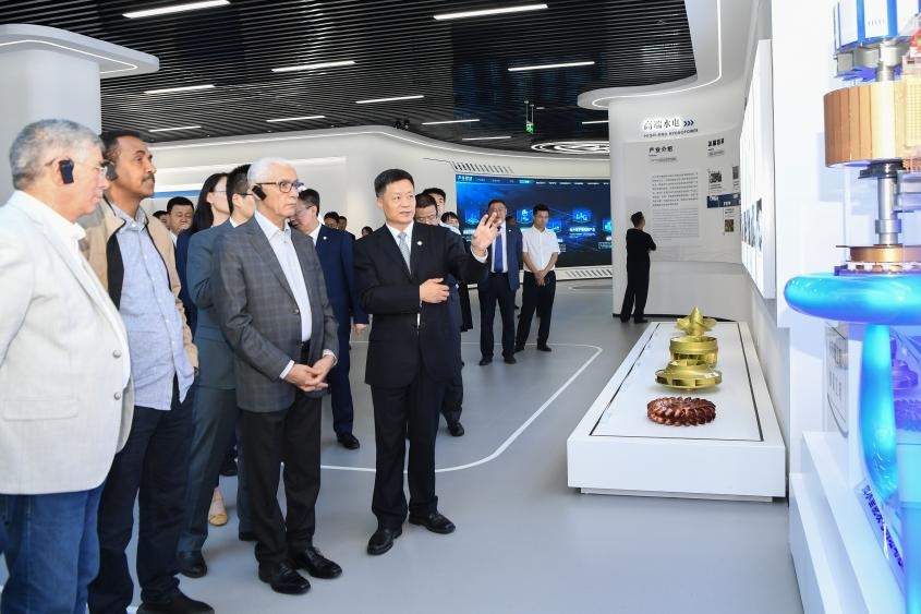 在俞培根等陪同下,阿拉米一行参观了东方电气科技展示厅,详细了解东方电气集团科技创新、绿色装备制造、共建“一带一路”等方面情况。阿拉米对东方电气集团在能源领域所取得的成就表示祝贺。