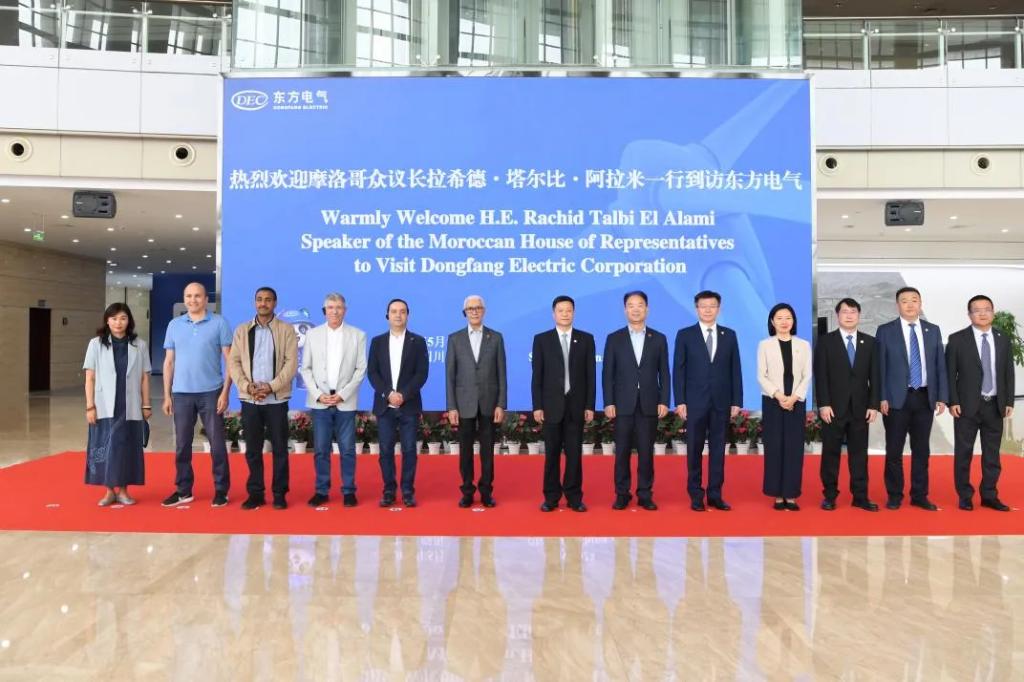 本网讯 5月12日,摩洛哥众议长拉希德·塔尔比·阿拉米一行来到东方电气集团,受到集团公司党组书记、董事长俞培根,党组成员、副总经理李忠军的热情接待。
