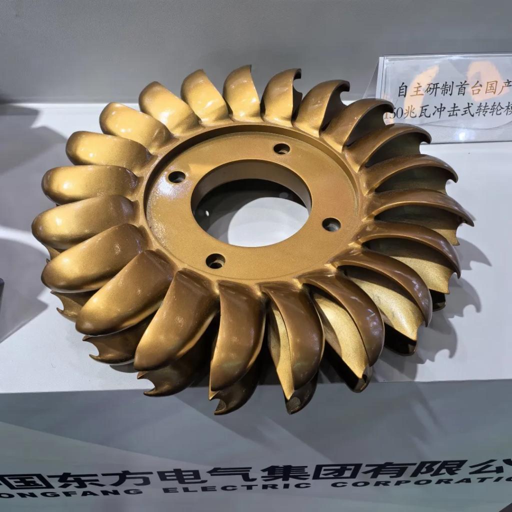 东方电气自主研制的首台国产化150兆瓦冲击式转轮,重约20吨,最大直径约4米,打破了国外长期垄断,实现了自主技术在冲击式水电领域从“0到1”的突破。